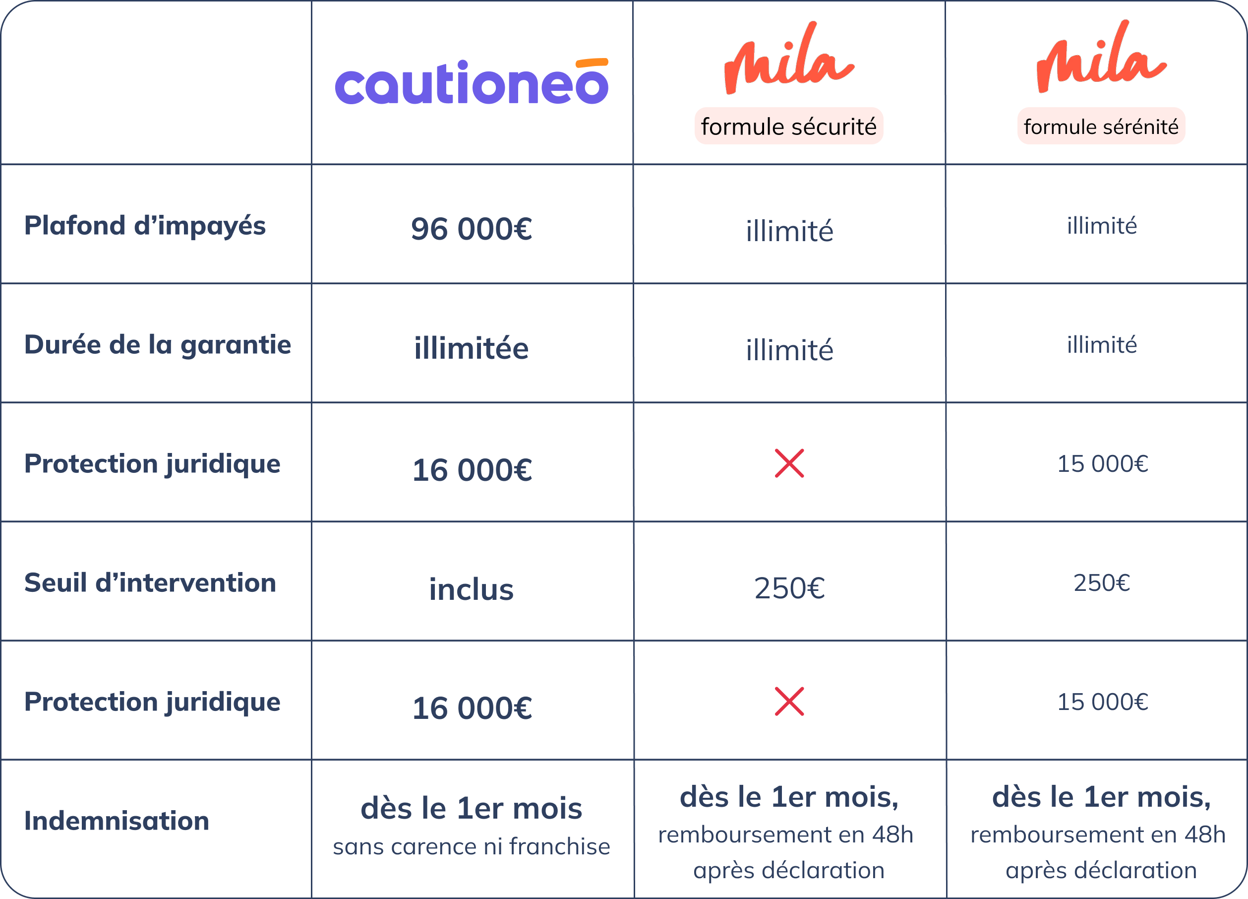 💡 Autrement dit, Mila est plus chère… sans pour autant mieux couvrir. Cautioneo reste la meilleure offre du marché : plus protectrice, plus réactive, et plus accessible.